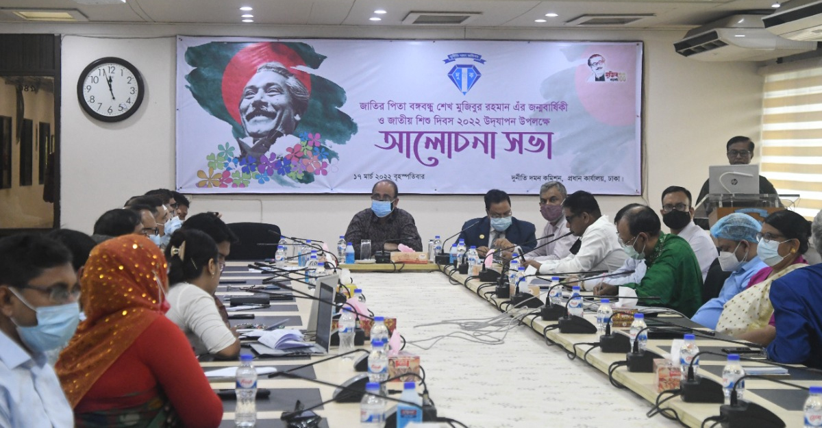 সভাপতির বক্তব্যে দুদক চেয়ারম্যান বলেন, আমরা সর্বকালের সর্বশ্রেষ্ঠ বাঙালি জাতির পিতা বঙ্গবন্ধু শেখ মুজিবুর রহমানের ১০২তম জন্মদিনে জাতীয় শিশু দিবস পালন করছি। বঙ্গবন্ধু না হলে আমরা বাংলাদেশ পেতাম না, বাংলাদেশের অভ্যুদয় হতো না। বঙ্গবন্ধু দূরদৃষ্টিসম্পন্ন ছিলেন। তিনি শিশুদের শিক্ষা থেকে শুরু করে সব ক্ষেত্রে সুপরিকল্পিত উদ্যোগ নিয়েছিলেন।