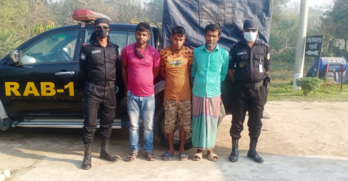 র্যাব-১ এর সহকারী পরিচালক (অপস্ অফিসার) সহকারী পুলিশ সুপার নোমান আহমদ জানান, শুক্রবার (১৮ মার্চ) র্যাব-১, উত্তরার একটি দল গোপন সংবাদের ভিত্তিতে জানতে পারে, ব্রাহ্মণবাড়িয়া থেকে একটি পিকআপযোগে গাঁজার বড় একটা চালান গাজীপুরের কাপাসিয়ার দিকে আসছে। ওই তথ্যের ভিত্তিতে দলটি শুক্রবার (১৮ মার্চ) ভোরে গাজীপুর জেলার কাপাসিয়া থানাধীন শ্যামপুর সালদই চৌরাস্তা গিয়াসপুর রোডে শামীম স্টোরের সামনে অস্থায়ী চেকপোস্ট স্থাপন করে ওই তিন মাদক ব্যবসায়ীকে গ্রেপ্তার করে। এ সময় তাদের কাছ থেকে ৫০ কেজি গাঁজা, মাদক পরিবহনে ব্যবহৃত একটি পিকআপ, ৩টি মোবাইল ফোন জব্দ করা হয়।