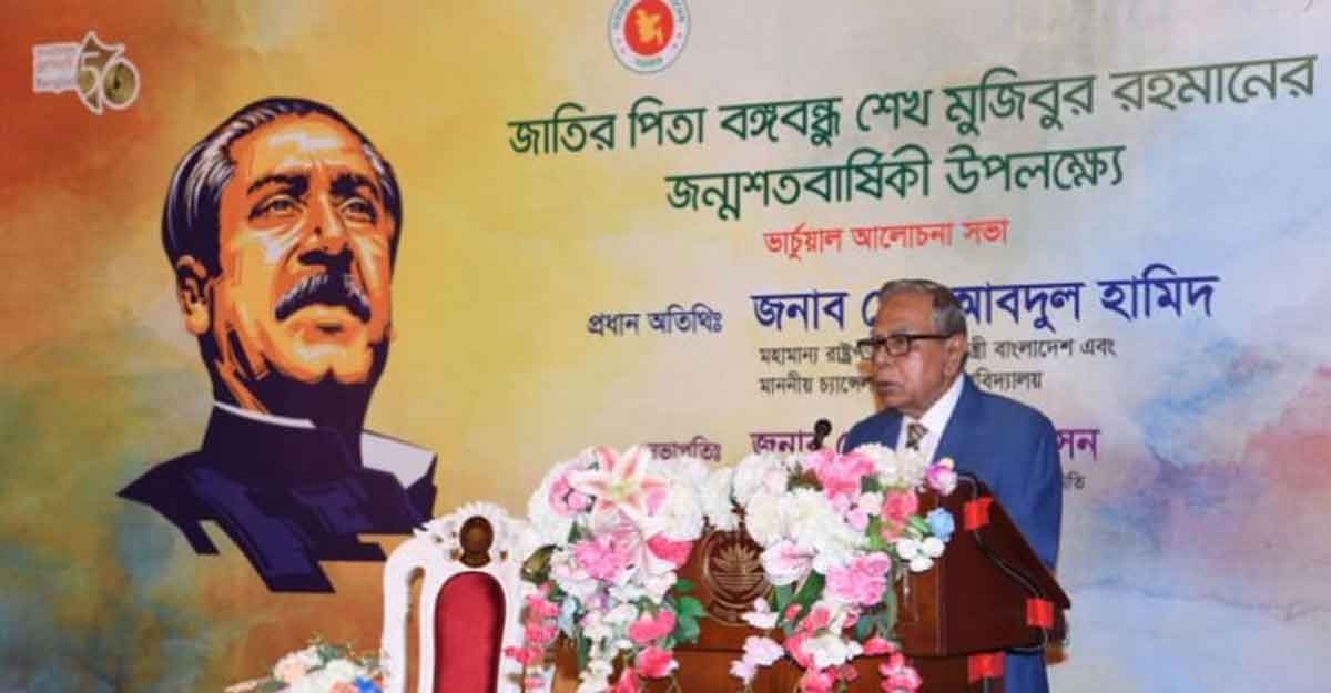 রোববার (২০ মার্চ) বিকেলে ‘বাংলাদেশ বেসরকারি বিশ্ববিদ্যালয় সমিতি’ আয়োজিত আলোচনা সভায় বঙ্গভবন থেকে ভার্চুয়ালি দেওয়া ভাষণে তিনি এ আহ্বান জানান। জাতির পিতা বঙ্গবন্ধু শেখ মুজিবুর রহমানের জন্মশতবার্ষিকী ও স্বাধীনতার সুবর্ণজয়ন্তী উপলক্ষে এ আলোচনা সভার আয়োজন করা হয়।