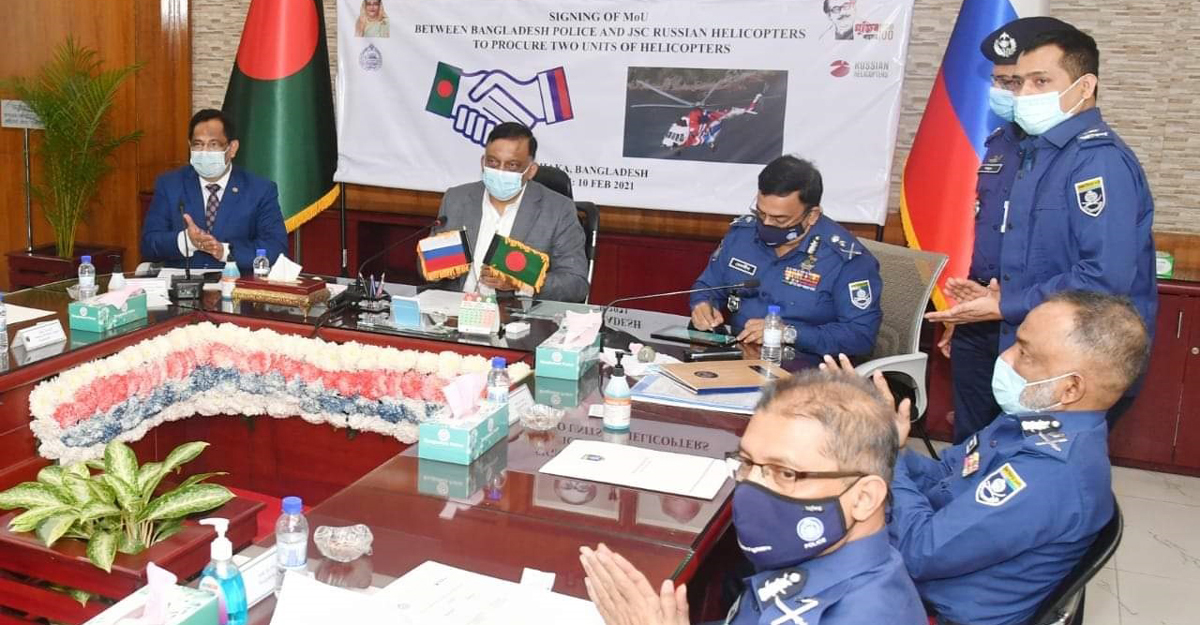 প্রেসনোটে বলা হয়, হেলিকপ্টার দুটি গভর্নমেন্ট টু গভর্নমেন্ট (জিটুজি) পদ্ধতিতে রাশিয়া থেকে কেনার জন্য আজ বিকেলে পুলিশ হেডকোয়ার্টার্সের শাপলা কনফারেন্স রুমে বাংলাদেশ পুলিশ এবং হেলিকপ্টার নির্মাতা প্রতিষ্ঠান জেএসসি রাশিয়ান হেলিকপ্টার্সের মধ্যে সমঝোতা স্মারক স্বাক্ষর হয়েছে।