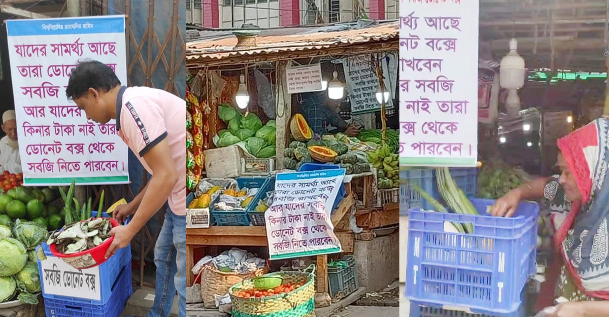 এদিকে চট্টগ্রামের ১৪টি বাজারে সবজি ডোনেট বক্স স্থাপন করেছে স্থানীয় সংগঠন ‘মসাইদাহ’। সংগঠনটির উদ্যোক্তা মো. আবু হাসান ও ব্যবসায়ী কায়সার আলম চৌধুরী কয়েকজনের সহযোগিতায় বিভিন্ন এলাকায় বসিয়েছেন সবজি ডোনেট বক্স। এ উদ্যোগের ফলে দোকানের বাইরে রাখা প্লাস্টিকের ক্যারেট বক্সে ক্রেতারা সাধ্যমতো সবজি রেখে যাচ্ছেন। আর যাদের সামর্থ্য নেই তারা নিচ্ছেন প্রয়োজন মতো। এ উদ্যোগ সাড়া ফেলেছে চট্টগ্রামে।