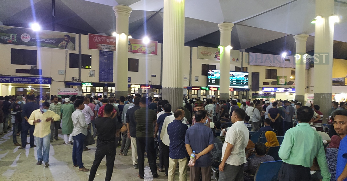 শুক্রবার (২৫ মার্চ) সন্ধ্যায় চট্টগ্রাম রেলওয়ে স্টেশনে টিকেট প্রত্যাশীদের চাপ বাড়ে। কিন্তু টিকিট দিতে সময় লাগায় স্টেশনে লম্বা সারি তৈরি হয়।