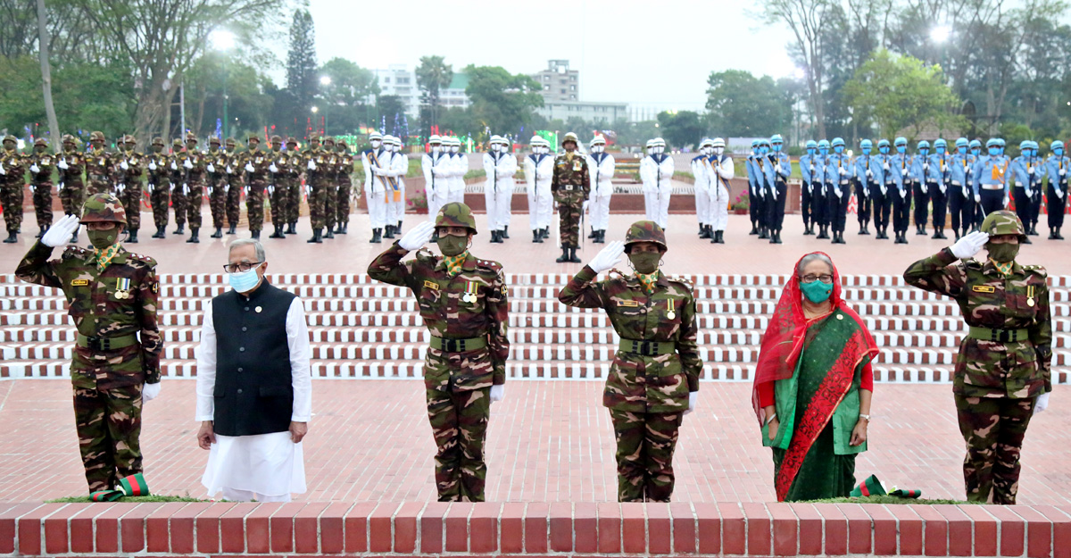এদিকে জাতীয় প্যারেড গ্রাউন্ডে ৩১ বার তোপধ্বনির মধ্য দিয়ে জাতির শ্রেষ্ঠ সন্তানদের স্মরণ করেছে সশস্ত্র বাহিনী।