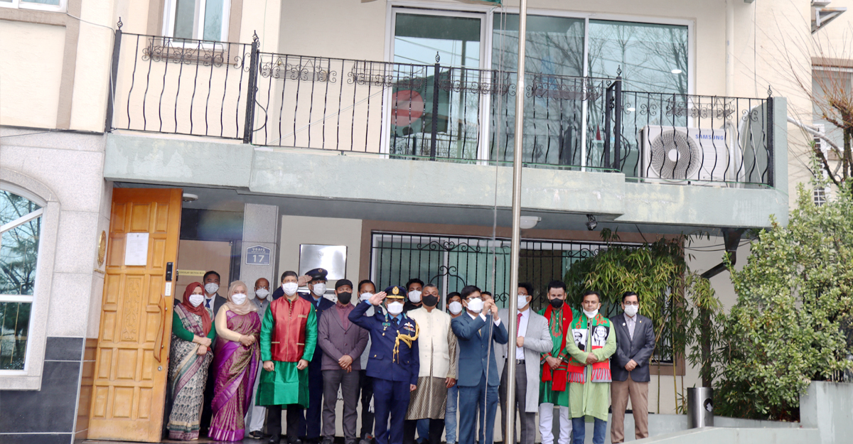শনিবার সকালে রাষ্ট্রদূত মো. দেলওয়ার হোসেন দূতাবাস প্রাঙ্গণে জাতীয় সংগীত সহযোগে জাতীয় পতাকা উত্তোলন করেন। এরপর দূতাবাসের কর্মকর্তা-কর্মচারী ও বাংলাদেশ কমিউনিটির সদস্যদের উপস্থিতিতে রাষ্ট্রদূত দূতাবাসে জাতির পিতার ভাস্কর্যে পুষ্পস্তবক অর্পণের মাধ্যমে শ্রদ্ধা জ্ঞাপন করেন।