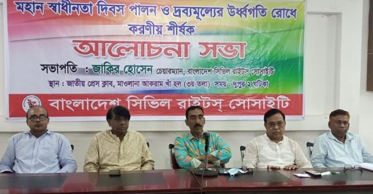 রোববার (২৭ মার্চ) বিকেলে সংগঠনটি আয়োজিত জাতীয় প্রেস ক্লাবের তফাজ্জল হোসেন মানিক মিয়া হলে ‘মহান স্বাধীনতা দিবস পালন ও দ্রব্যমূল্যের ঊর্ধ্বগতি রোধে করণীয়’ শীর্ষক আলোচনা সভা থেকে এ আহ্বান জানানো হয়।