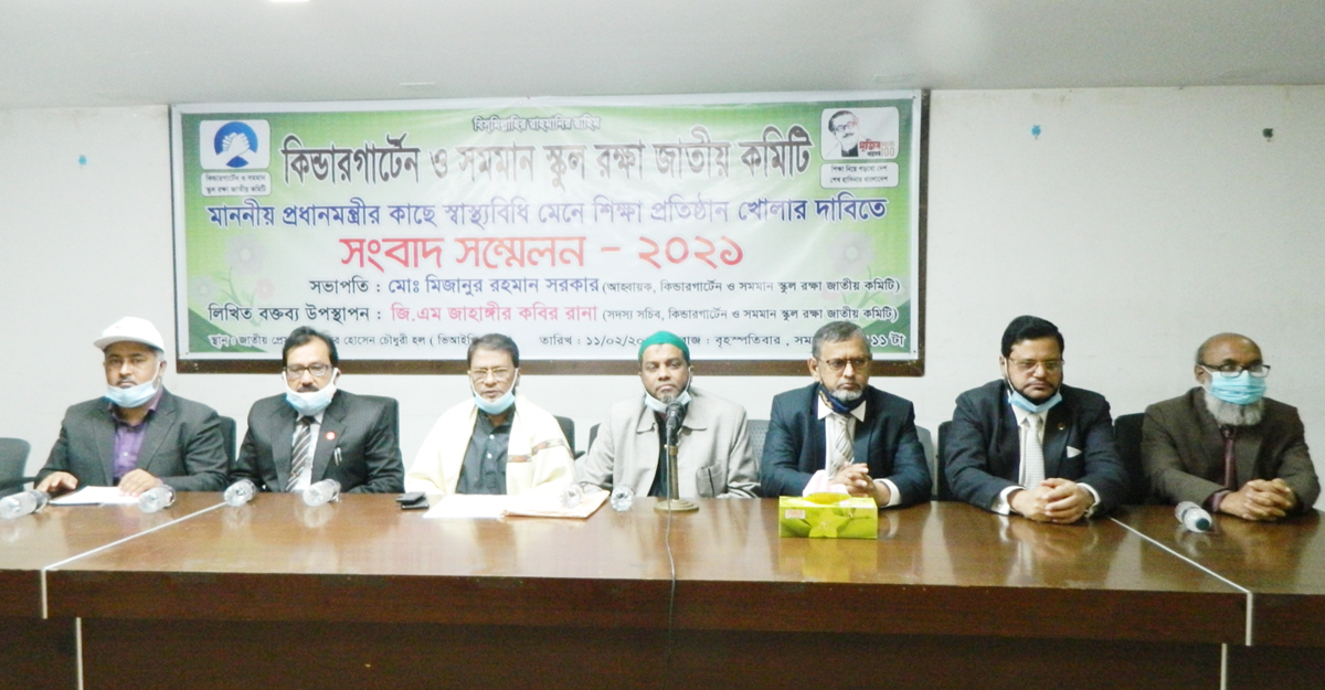 সংবাদ সম্মেলনে লিখিত বক্তব্যে সংগঠনের সদস্য সচিব জিএম জাহাঙ্গীর কবির রানা বলেন, সরকারি শিক্ষাপ্রতিষ্ঠানের পাশাপাশি দেশের প্রায় ৪০ হাজার কিন্ডারগার্টেন ও সমমনা স্কুল দেশের শিক্ষাব্যবস্থায় গুরুত্বপূর্ণ অবদান রেখে চলেছে। প্রাথমিক শিক্ষায় প্রধানমন্ত্রীর যে সাফল্য তার প্রায় অর্ধেক অবদান কিন্ডারগার্টেন স্কুলগুলোর। করোনা মহামারির কারণে সরকারের সিদ্ধান্তে এসব শিক্ষাপ্রতিষ্ঠান দীর্ঘ ১১ মাস ধরে বন্ধ রয়েছে। এ অবস্থায় সরকারি প্রাথমিক শিক্ষকরা সব ধরনের সুযোগ-সুবিধা পেলেও কিন্ডারগার্টেনের প্রায় ১০ লাখ শিক্ষক-কর্মচারী বেতন ও অন্যান্য সুবিধা থেকে বঞ্চিত রয়েছেন। বেশিরভাগ প্রতিষ্ঠান ভাড়া বাড়িতে হওয়ায় বাড়িভাড়া ও অন্যান্য খরচ বহন করতে প্রতিষ্ঠানের মালিক বা পরিচালকদের অবস্থা এখন নাজুক। আর্থিক চাপ সইতে না পেরে বহু শিক্ষাপ্রতিষ্ঠান ইতোমধ্যে বন্ধ হয়ে গেছে, যা জাতির জন্য লজ্জাজনক।