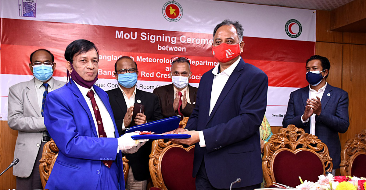সমঝোতা স্মারকে রেড ক্রিসেন্ট সোসাইটির মহাসচিব ও সরকারের সাবেক সচিব মো. ফিরোজ সালাহ্ উদ্দিন এবং আবহাওয়া অধিদপ্তরের পরিচালক সামছুদ্দিন আহমেদ নিজ-নিজ প্রতিষ্ঠানের পক্ষে স্বাক্ষর করেন।