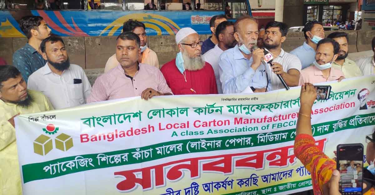প্যাকেজিং কাগজের মূল্য সিন্ডিকেটের মাধ্যমে বছর বছর অস্বাভাবিকভাবে বৃদ্ধি পাচ্ছে। তাই এই সিন্ডিকেট বন্ধ করাসহ ৭ দফা দাবি জানিয়েছে বাংলাদেশ লোকাল কার্টন ম্যানুফেকচারার্স অ্যাসোসিয়েশন।