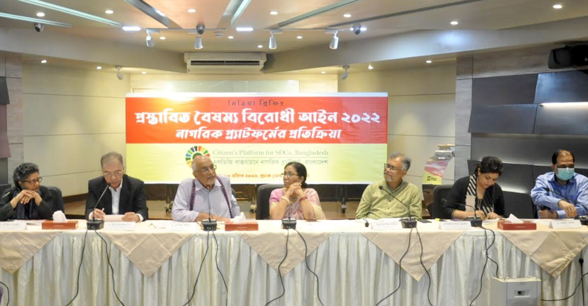 রোববার (১০ এপ্রিল) রাজধানীর ব্র্যাক সেন্টারে অনুষ্ঠিত ‘প্রস্তাবিত বৈষম্য বিরোধী আইন ২০২২ : নাগরিক প্ল্যাটফর্মের প্রতিক্রিয়া’ শীর্ষক মিডিয়া ব্রিফিংয়ে বিভিন্ন বক্তাদের বক্তব্যে এসব উঠে আসে।