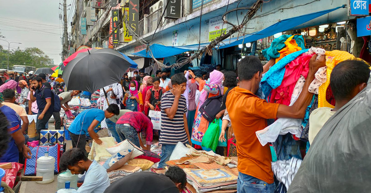 বুধবার (১৩ এপ্রিল) দুপুরে রাজধানীর নিউমার্কেট, চন্দ্রিমা সুপার মার্কেট, গাউছিয়া মার্কেট, ধানমন্ডি হকার্স মার্কেট, নূর ম্যানশন মার্কেট, ঢাকা নিউ সুপার মার্কেট, নুরজাহান সুপার মার্কেট, গ্লোব শপিং সেন্টার, এলিফ্যান্ট রোড, সায়েন্স ল্যাবরেটরি ও তার আশেপাশের এলাকা ঘুরে এমন চিত্রই দেখা যায়।