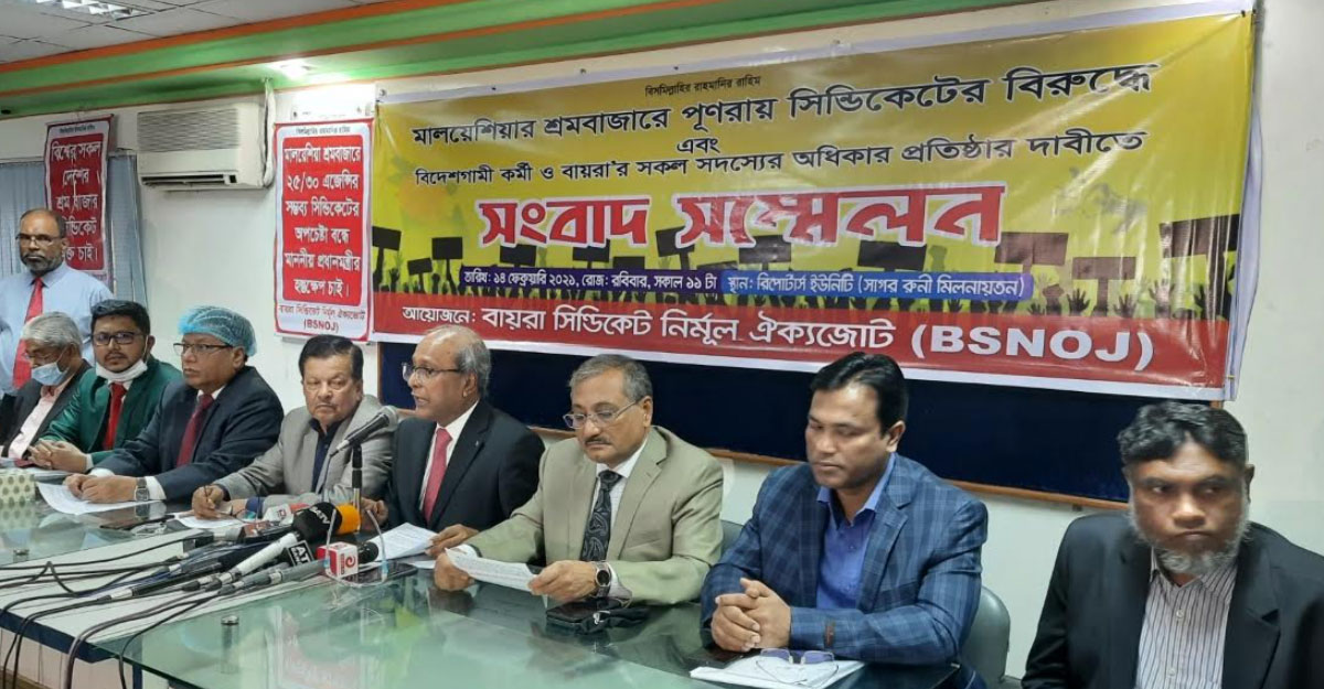 রোববার (১৪ ফেব্রুয়ারি) ঢাকা রিপোর্টার্স ইউনিটির সাগর রুনি মিলনায়তনে বায়রা সিন্ডিকেট নির্মূল ঐক্যজোট আয়োজিত এক সংবাদ সম্মেলনে এই দাবি জানান তারা। সংবাদ সম্মেলনে সংগঠনটির আহ্বায়ক বীর মুক্তিযোদ্ধা আলী হায়দার চৌধুরী বলেন, সরকারের প্রতিশ্রুত স্বল্প খরচে বৈধভাবে, সব বৈধ রিক্রুটিং এজেন্সির অংশগ্রহণে স্বচ্ছ প্রক্রিয়ার মাধ্যমে মালয়েশিয়ায় কর্মী পাঠানোর বৈঠককে আমরা স্বাগত জানাই।