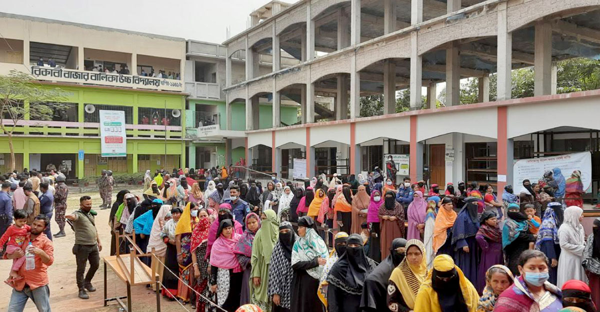 রিকাবী বাজার বালিকা উচ্চ বিদ্যালয় কেন্দ্রে ভোটারদের সরব উপস্থিতি /ছবি- ঢাকা পোস্ট
