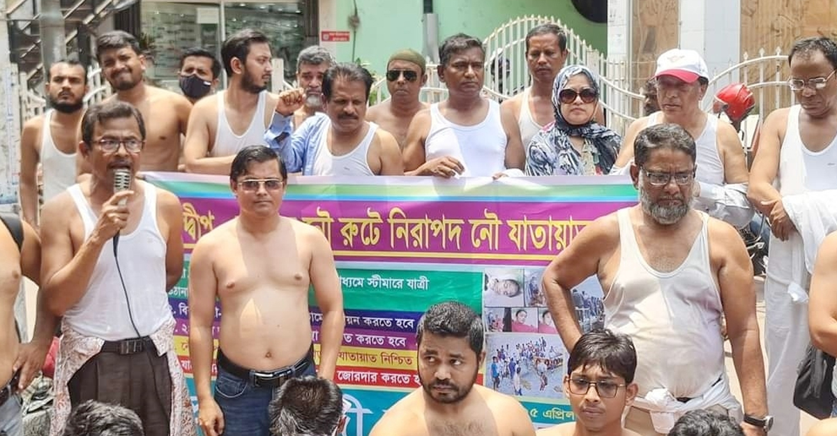 এই মানববন্ধনে অংশ নিয়ে সন্দ্বীপের বাসিন্দা ও দৈনিক সমকালের চট্টগ্রামের ব্যুরো প্রধান সারোয়ার সুমন বলেন, আজকের এই মানববন্ধনে আমাদের গায়ে কোনো পোশাক নেই। আমরা মধ্যযুগীয় পোশাকে আছি। কেন আছি? কারণ সন্দ্বীপ-চট্টগ্রাম যাতায়াতের নৌ-ঘাটে গেলে আমাদের এভাবে পোশাক খুলতে হয়। আমরা এ মধ্যযুগীয় যাতায়াত ব্যবস্থার প্রতিবাদ হিসেবে আজ জমা খুলেছি।