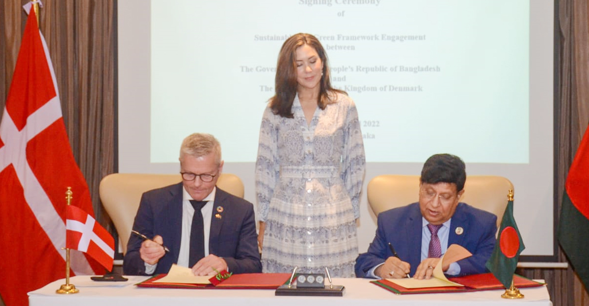 সবুজ ও টেকসই ফ্রেমওয়ার্ক এনগেজমেন্ট নামে একটি ডকুমেন্টে স্বাক্ষর করেছে বাংলাদেশ ও ডেনমার্ক। এ চুক্তির আওতায় সবুজ এবং টেকসই অংশীদারিত্বকে শক্তিশালী করতে ঢাকাকে সহযোগিতা করবে কোপেনহেগেন।
