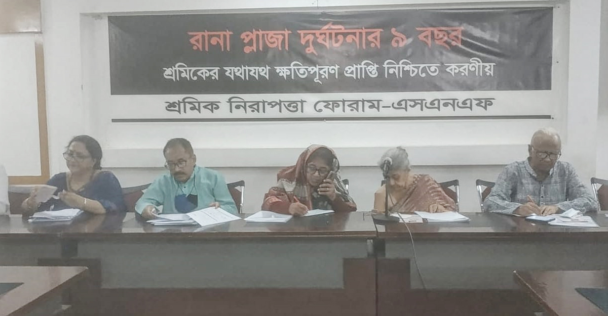 মঙ্গলবার (২৬ এপ্রিল) জাতীয় প্রেস ক্লাবের তফাজ্জল হোসেন মানিক মিয়া হলে শ্রমিক নিরাপত্তা ফোরাম আয়োজিত 'রানা প্লাজা দুর্ঘটনার ৯ বছর-শ্রমিকের যথাযথ ক্ষতিপূরণ প্রাপ্তি নিশ্চিতে করণীয়' শীর্ষক আলোচনা সভায় এসব সুপারিশ জানানো হয়।