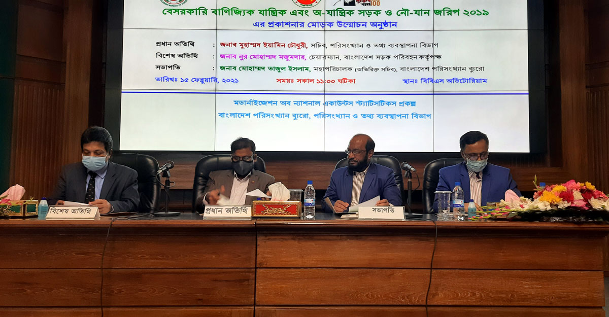 সোমবার (১৫ ফেব্রুয়ারি) রাজধানীর আগারগাঁওয়ে বাংলাদেশ পরিসংখ্যান ব্যুরোর (বিবিএস) অডিটোরিয়ামে ‘বেসরকারি বাণিজ্যিক যান্ত্রিক এবং অযান্ত্রিক সড়ক ও নৌযান জরিপ -২০১৯’ এর প্রকাশনা-মোড়ক উন্মোচন করা হয়। মোড়ক উন্মোচন অনুষ্ঠানে এ তথ্য জানায় বিবিএস।