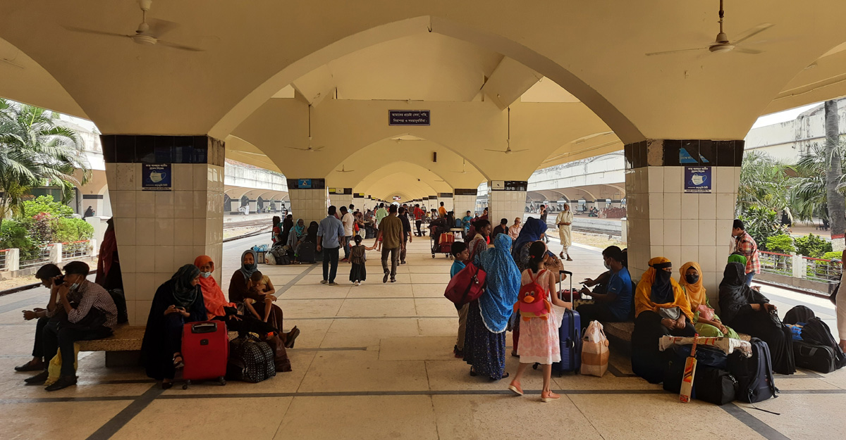 শুক্রবার (২৯ এপ্রিল) সকালে রাজধানীর কমলাপুর রেলস্টেশনের ভেতরে-বাইরে ঘুরে এমন চিত্র দেখা গেছে।