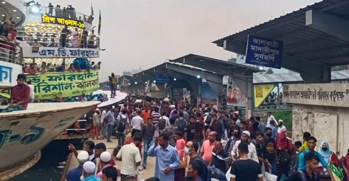 শনিবার (৩০ এপ্রিল) বিকেল থেকে সন্ধ্যা পর্যন্ত সরেজমিনে এ চিত্র দেখা গেছে। দুপুরের পর থেকে সদরঘাটে যাত্রীদের চাপ বাড়তে থাকে। সন্ধ্যার দিকে ভিড় আরও বেড়ে যায়। তাদের সামলানোর চেষ্টা করছেন দায়িত্বরতরা।