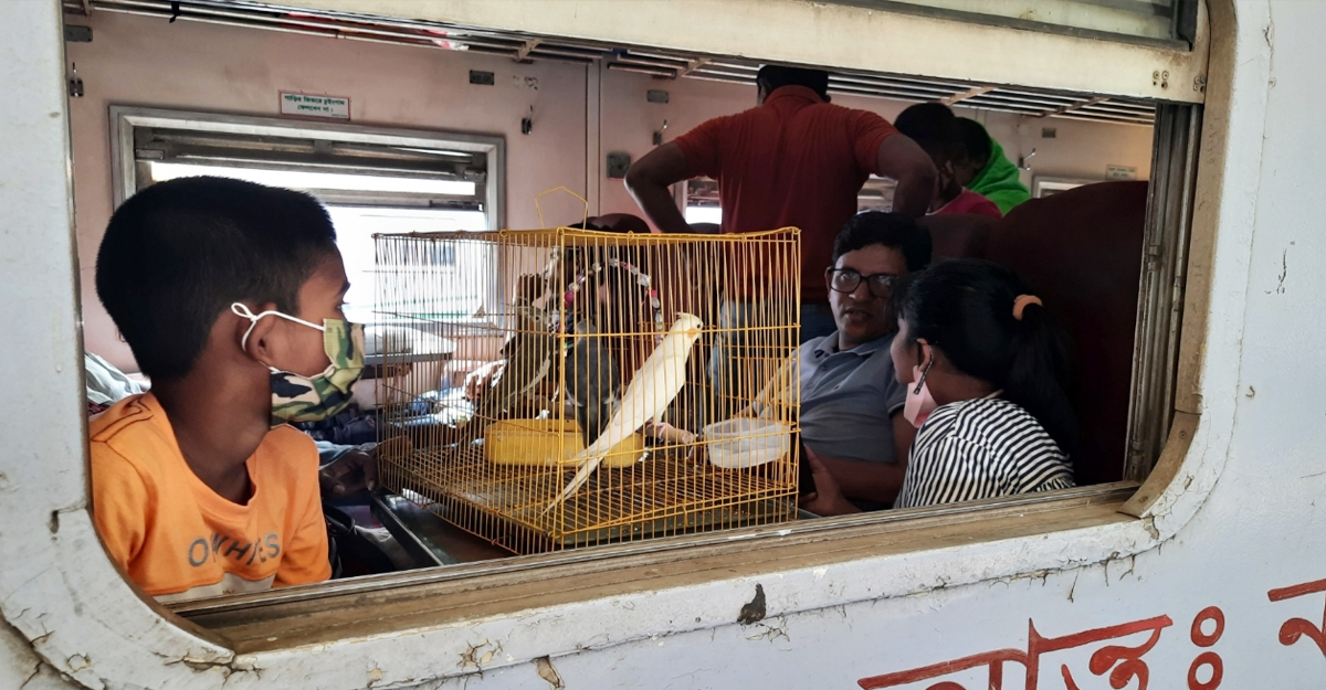 কালনী এক্সপ্রেসে সিলেট শহরের বদিকোনায় যাবেন আব্দুল্লাহ আল মামুন। ঈদের এই যাত্রায় সঙ্গে যাচ্ছেন তার স্ত্রী, মেয়ে ও মেয়ের পছন্দের পাখি ককাটিয়েল। মামুন ঢাকা পোস্টকে বলেন, করোনার সময়ে এ পাখিগুলোই মেয়ের সঙ্গী ছিল।৫ দিনের ছুটিতে বাড়ি যাচ্ছি, পাখিগুলোকে আর কোথায় রেখে যাব? তাই সঙ্গেই নিয়ে যাচ্ছি।