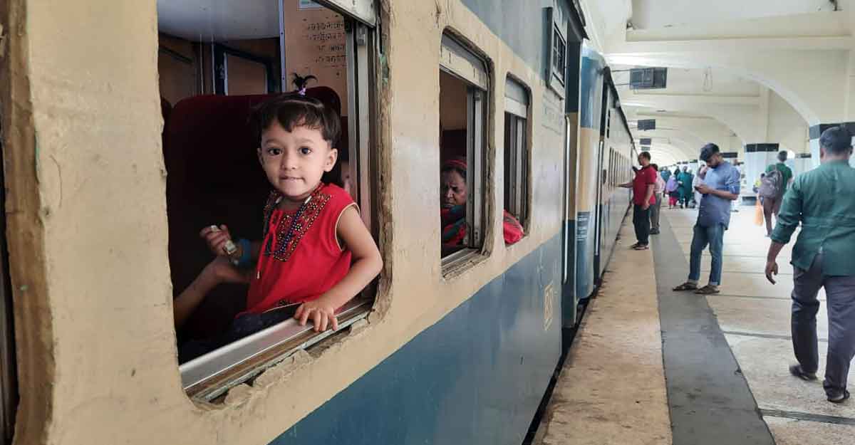 সকাল ১০টা থেকে বেলা সাড়ে ১১টা পর্যন্ত রাজধানীর কমলাপুর রেলস্টেশন ঘুরে দেখা যায়, ৩ নাম্বার প্লাটফর্মে তারাকান্দিগামী অগ্নিবীণা এক্সপ্রেস, ৫ নাম্বার প্লাটফর্মে সিলেটগামী জয়ন্তিকা এক্সপ্রেস এবং ৬ নাম্বার প্লাটফর্মে কিশোরগঞ্জগামী কিশোরগঞ্জ এক্সপ্রেস দাঁড়ানো আছে। ট্রেনগুলোর প্রতিটি বগিই মানুষে প্রায় পূর্ণ। আসন তেমন একটা ফাঁকা নেই। কোনো কোনো বগিতে দাঁড়িয়েও লোকজন বাড়ির উদ্দেশ্যে যাত্রার প্রস্তুতি নিচ্ছেন। তাদের মুখে এখনও রয়েছে ঈদের হাসি।