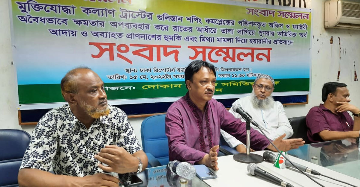 মুক্তিযোদ্ধা কল্যাণ ট্রাস্টের গুলিস্তান শপিং কমপ্লেক্সে পজেশন নেওয়া অফিস ও ফ্যাক্টরি অবৈধভাবে তালা লাগিয়ে পুনরায় অতিরিক্ত টাকা আদায় ও প্রাণনাশের হুমকির অভিযোগ করেছেন ওই মার্কেটের ব্যবসায়ী মো. মান্নান মিয়া।