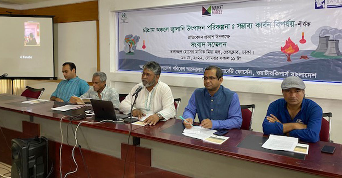 সোমবার জাতীয় প্রেসক্লাবে এক সংবাদ সম্মেলনে বক্তারা এসব কথা বলেন। ‘চট্টগ্রাম অঞ্চলে জ্বালানি উৎপাদন পরিকল্পনা : সম্ভাব্য কার্বন বিপর্যয়’ শীর্ষক গবেষণা প্রতিবেদন প্রকাশ উপলক্ষে এ সংবাদ সম্মেলনের যৌথভাবে আয়োজন করে বাংলাদেশ পরিবেশ বাচাঁও আন্দোলন (বাপা), মার্কেট ফোর্সেস, ওয়াটারকিপার্স বাংলাদেশ।