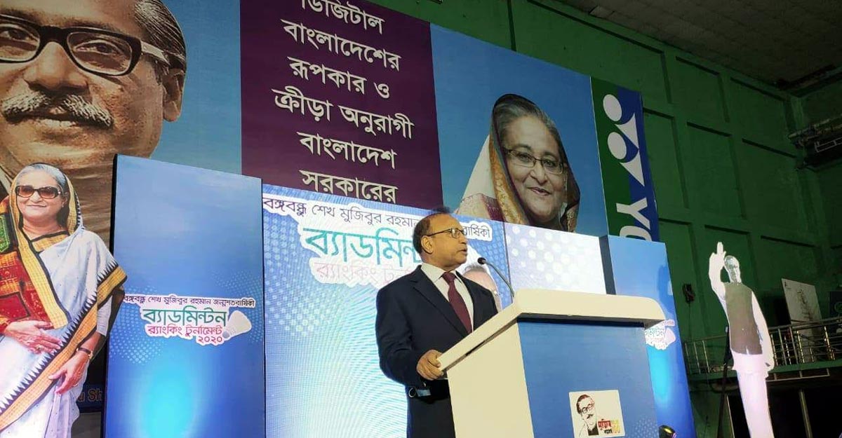 রোববার (২০ ডিসেম্বর) রাজধানীর শহীদ তাজউদ্দীন আহমদে ইনডোর স্টেডিয়ামে বঙ্গবন্ধু জন্মশতবার্ষিকী ব্যাডমিন্টন র্যাংকিং টুর্নামেন্ট-২০২০ এর উদ্বোধনী অনুষ্ঠানে প্রধান অতিথির বক্তব্যে তিনি একথা বলেন।