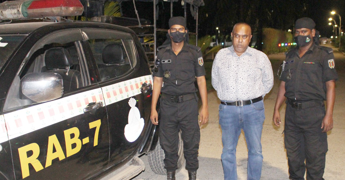 র্যাবের এই কর্মকর্তা বলেন, তাকে গ্রেপ্তারের লক্ষ্যে ব্যাপক নজরদারি অব্যাহত রাখে র্যাব। তারই ধারাবাহিকতায় র্যাব চট্টগ্রাম শাহ আমানত বিমানবন্দরের প্রধান ফটকের সামনের রাস্তা থেকে রোববার রাতে তাকে গ্রেপ্তার করেছে। এসময় তার কাছ থেকে বিভিন্ন ব্যাংকের এটিএম ও অন্যান্য কার্ড, বিদেশি ডানহিল সিগারেট, চেক বই, আইপ্যাড ট্যাব, বিভিন্ন ব্রান্ডের হাতঘড়ি, আইফোন এবং অ্যান্ড্রয়েড মোবাইল জব্দ করে।