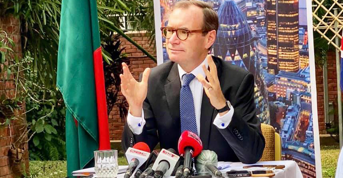 সংবাদ সম্মেলনে বক্তব্য রাখেন ব্রিটিশ হাইকমিশনার রবার্ট চ্যাটার্টন ডিকসন