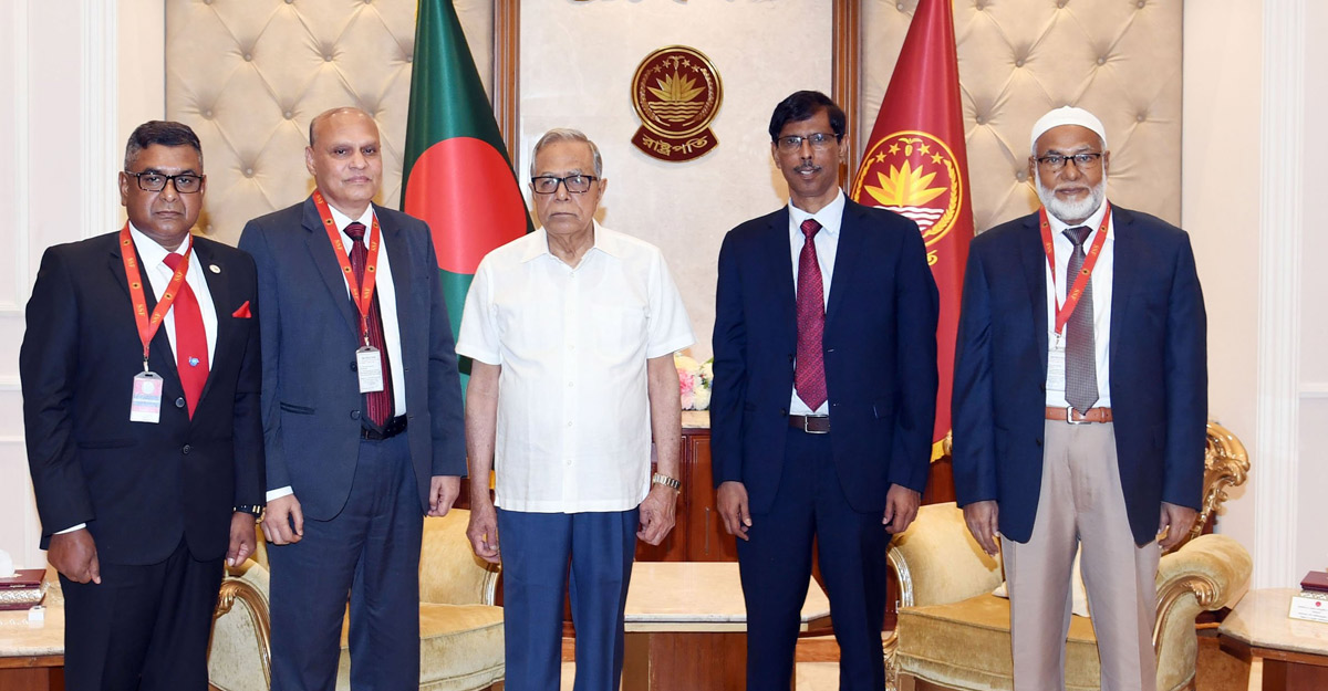 রাষ্ট্রপতির প্রেস সচিব মো. জয়নাল আবেদীন জানান, রাষ্ট্রপতির সঙ্গে প্রথমে সাক্ষাৎ করেন বঙ্গমাতা শেখ ফজিলাতুন্নেছা মুজিব বিজ্ঞান ও প্রযুক্তি বিশ্ববিদ্যালয়ের উপাচার্য অধ্যাপক ড. সামসুদ্দিন আহমেদের নেতৃত্বে একটি প্রতিনিধিদল। পরে সাক্ষাৎ করেন বঙ্গবন্ধু শেখ মুজিবুর রহমান এভিয়েশন অ্যান্ড অ্যারোস্পেস বিশ্ববিদ্যালয়ের উপাচার্য এয়ার ভাইস মার্শাল মো. নজরুল ইসলাম।