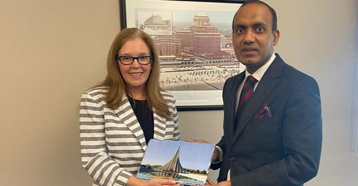 স্টকটন বিশ্ববিদ্যালয়ের অধ্যাপক ও স্টকটন সেন্টার ফর কমিউনিটি এনগেজমেন্টের এক্সিকিউটিভ ডিরেক্টর ড. মেরিডাউইলডা কোলনের সঙ্গে বৈঠক করেছেন নিউ ইয়র্কে বাংলাদেশ কনস্যুলেট জেনারেলের কনসাল জেনারেল ড. মোহাম্মদ মনিরুল ইসলাম।