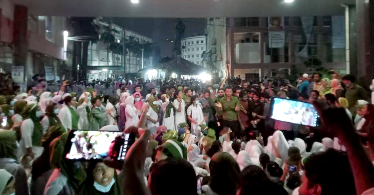 রাফাত জামান নামের এক নার্স বলেন, মারধরের বিচার নিশ্চিত করতে হবে। যতক্ষণ পর্যন্ত বিচার হবে না, ততক্ষণ আমাদের আন্দোলন চলবে।