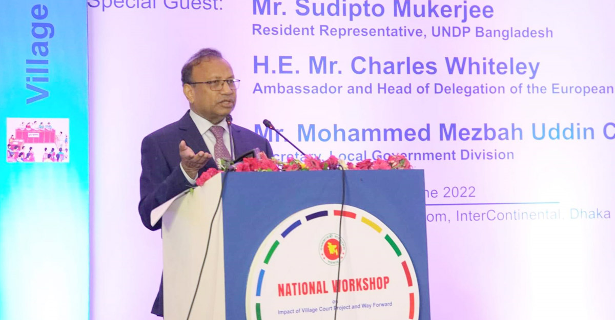 বুধবার (১৫ জুন) রাজধানীর হোটেল ইন্টারকন্টিনেন্টালে ইউরোপীয় ইউনিয়ন ও ইউএনডিপির সহায়তায় স্থানীয় সরকার বিভাগ আয়োজিত গ্রাম আদালতের প্রভাব এবং ভবিষ্যৎ করণীয় শীর্ষক জাতীয় কর্মশালায় তিনি এ তথ্য জানান।