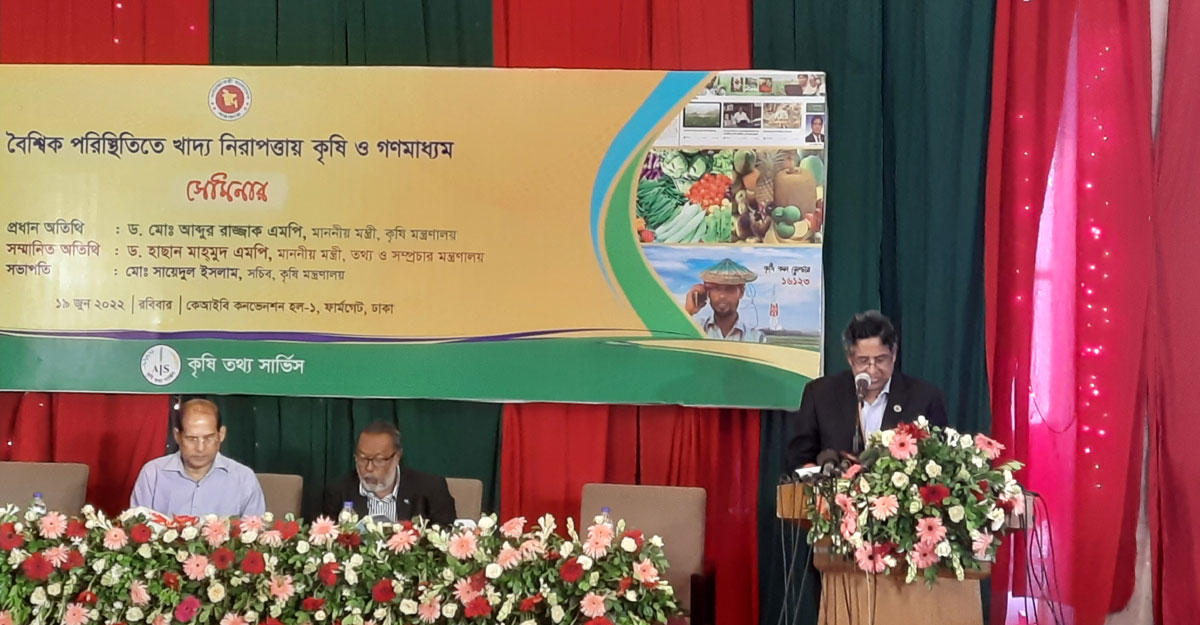 রোববার (১৯ জুন) রাজধানীর কৃষিবিদ ইন্সটিটিউটে কৃষি তথ্য সার্ভিস আয়োজিত ‘বৈশ্বিক পরিস্থিতিতে খাদ্য নিরাপত্তায় কৃষি ও গণমাধ্যম’ শীর্ষক সেমিনারে তিনি এসব কথা বলেন।