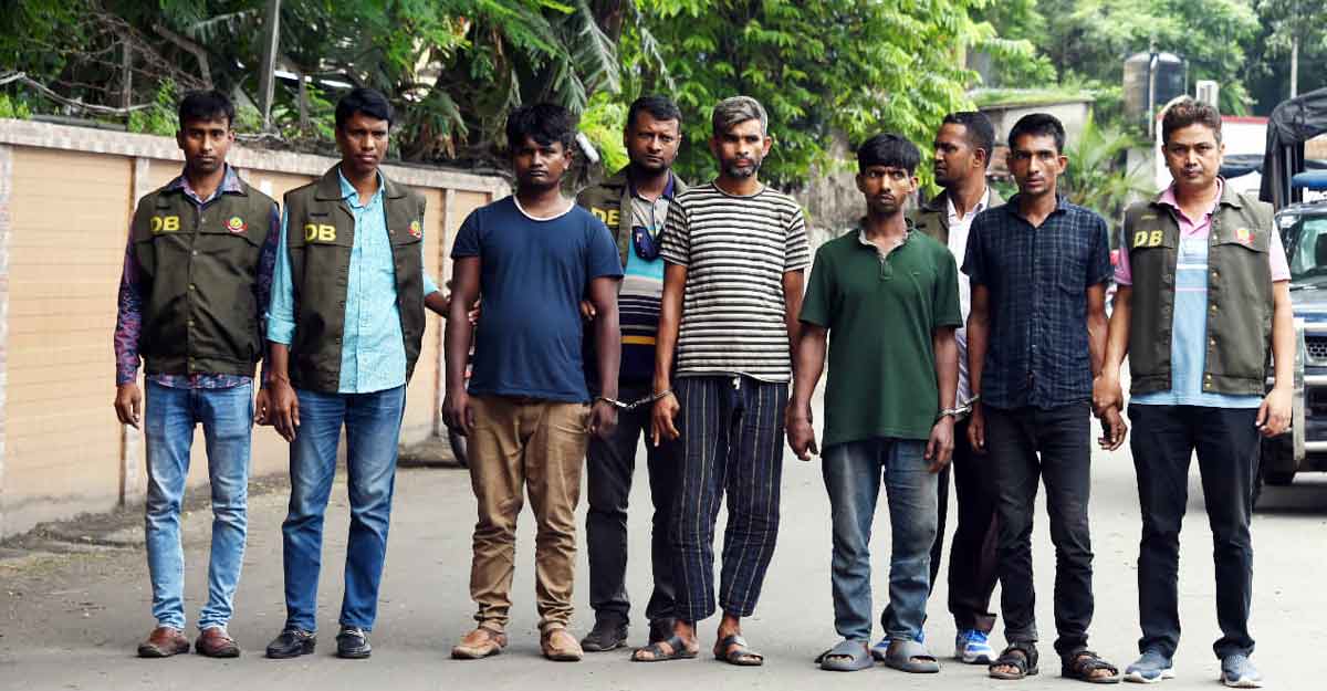 গ্রেপ্তাররা হলেন- মো. জাকির হোসেন (৩২), মো.সবুজ (৩৪), মো.ওমর (৩০) ও মো. ওসমান গনি স্বপ্ন (৪০)। গ্রেপ্তারের সময় তাদের কাছ থেকে ১টি সোনার চেইন, নগদ ১৪ হাজার টাকা, ১টি চাপাতি, ২টি লিভার, ২টি সেলাই রেঞ্জ, ১টি স্ক্রু ডাইভার ও ১টি চাকু জব্দ করা হয়।
