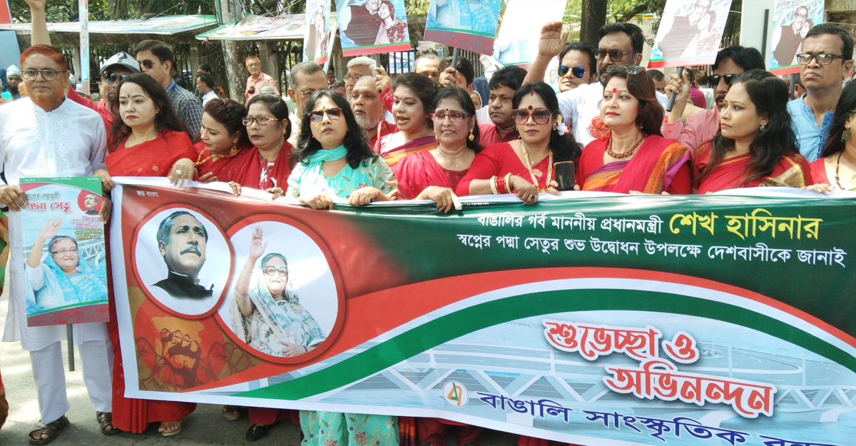 শুক্রবার জাতীয় প্রেস ক্লাবের সামনে বাঙালি সাংস্কৃতিক বন্ধনের উদ্যোগে ২০টি সাংস্কৃতিক সংগঠনের যৌথ আয়োজনে পদ্মা সেতু উদ্বোধন উপলক্ষে দেশবাসীকে শুভেচ্ছা ও অভিনন্দন জানিয়ে আনন্দ র্যালির আগে তিনি এসব কথা বলেন। র্যালিতে সভাপতিত্ব করেন বাঙালি সাংস্কৃতিক বন্ধনের ভারপ্রাপ্ত সভাপতি সাইদুর রহমান সজল।