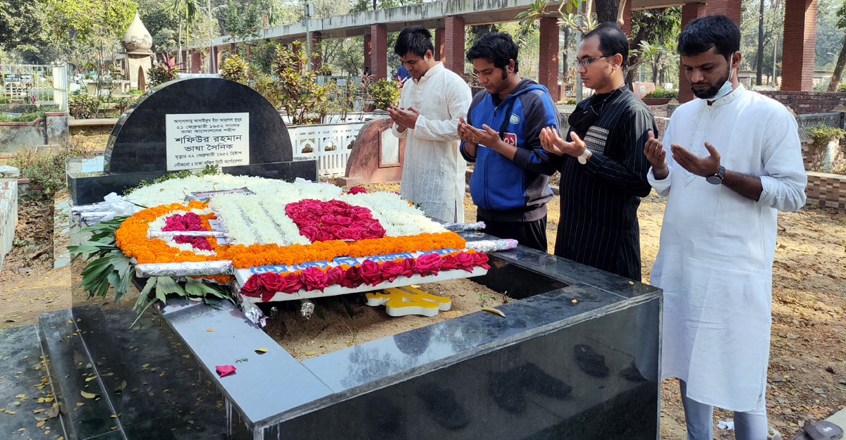 বাবার কাছে গল্প শুনে কেন্দ্রীয় শহীদ মিনার ঘুরে ভাষা শহীদদের কবর দেখতে এসেছে গভঃ ল্যাবরেটরি স্কুলের সপ্তম শ্রেণির শিক্ষার্থী রিয়াজ। সঙ্গে রয়েছে তার সহপাঠী সঞ্জয়। রিয়াজ জানালো, ভাষা শহীদদের শ্রদ্ধা জানাতে সবাই শহীদ মিনারে সে কথা জানতাম কিন্তু শহীদদের কবর আজিমপুর কবরস্থানে রয়েছে তা জানতাম না। গতকাল রাতে বাবার কাছে শুনেছি। তাই আজ দেখতে চলে আসলাম।