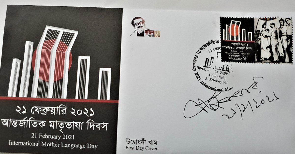 আন্তর্জাতিক মাতৃভাষা দিবস উপলক্ষে ডাক অধিদপ্তর স্মারক ডাকটিকিট, উদ্বোধনী খাম ও ডাটা কার্ড প্রকাশ করেছে। রোববার (২১ ফেব্রুয়ারি) ডাক ও টেলিযোগাযোগ মন্ত্রী মোস্তাফা জব্বার অনলাইনে যুক্ত হয়ে ১০ টাকা মূল্যমানের একটি স্মারক ডাকটিকিট, ১০ টাকা মূল্যমানের একটি উদ্বোধনী খাম ও ৫ টাকা মূল্যমানের একটি ডাটাকার্ড উদ্বোধন করেন। মন্ত্রী এ বিষয়ে একটি সীলমোহর ব্যবহার করেন।