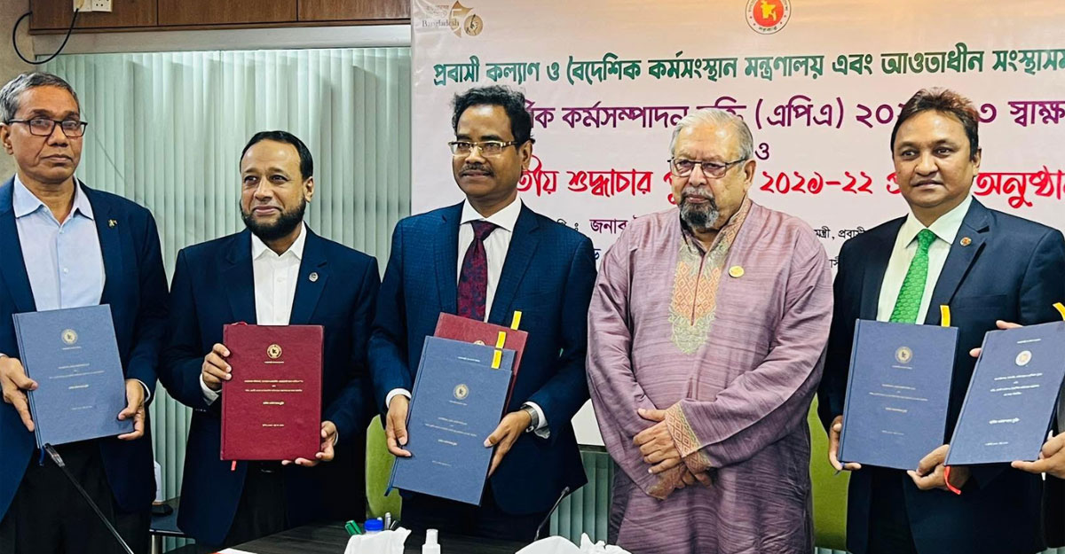 প্রবাসী কল্যাণ ও বৈদেশিক কর্মসংস্থান মন্ত্রণালয় এবং এর আওতাধীন সংস্থাসমূহের মধ্যে বার্ষিক কর্মসম্পাদন চুক্তি স্বাক্ষর অনুষ্ঠিত হয়েছে।