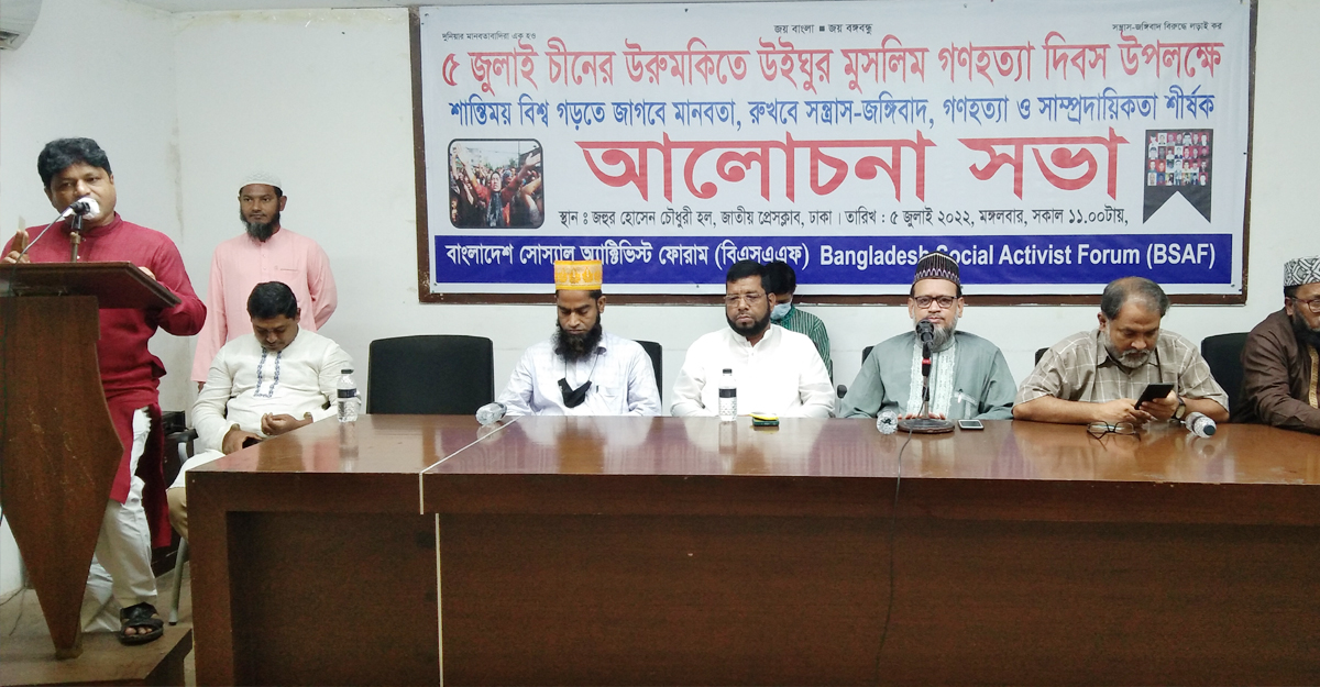 চীনের জিনজিয়াংয়ের রাজধানী উরুমকিতে মুসলিম উইঘুরদের গণহত্যার বিচার আন্তর্জাতিক আদালতে করার দাবি জানিয়েছে বাংলাদেশ সোশ্যাল অ্যাক্টিভিস্ট ফোরাম।