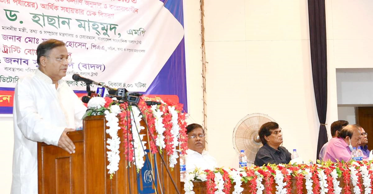 মঙ্গলবার (৫ জুলাই) বিকেলে রাজধানীর কাকরাইলে প্রেস ইনস্টিটিউট মিলনায়তনে সাংবাদিকদের মাঝে বাংলাদেশ সাংবাদিক কল্যাণ ট্রাস্টের কল্যাণ অনুদান ও করোনাকালীন ২য় পর্যায়ের সহায়তা চেক বিতরণ অনুষ্ঠানে প্রধান অতিথির বক্তৃতায় তিনি এ কথা বলেন।