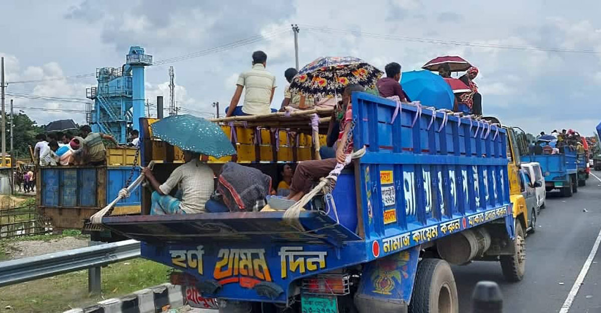 • আরও পড়ুন : বাসে ট্রাকে কন্টেইনারে যে যেভাবে পারছে ছুটছে