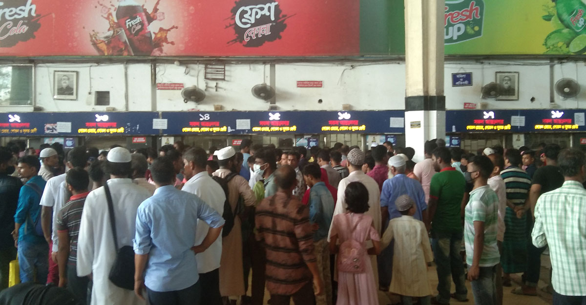 ট্রেনের টিকিট পেতে আজও কমলাপুরে ভিড় যাত্রীদের