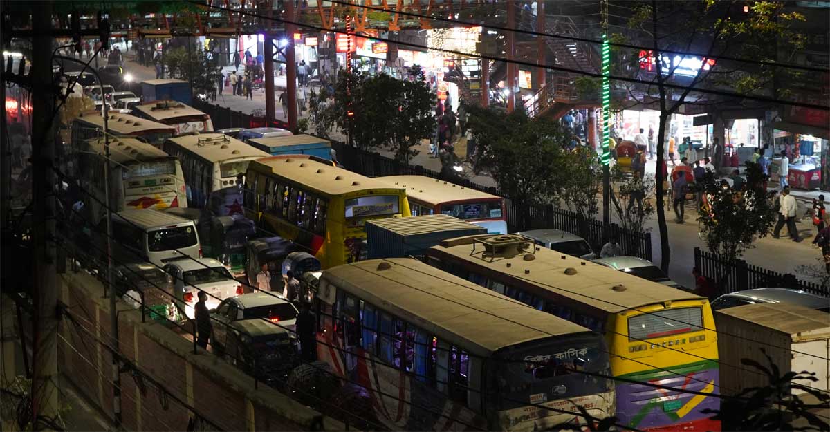বিক্ষোভের ফলে দুই পাশের রাস্তায় তীব্র যানজটের সৃষ্টি হয়/ ছবি: ঢাকা পোস্ট