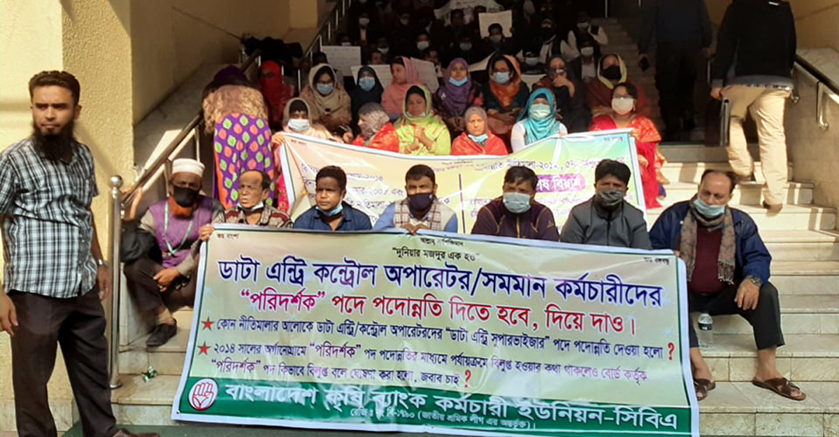 পদোন্নতির দাবিতে আন্দোলন ও অবস্থান কর্মসূচি পালন করছেন বাংলাদেশ কৃষি ব্যাংকের ডাটা এন্ট্রি ও কন্ট্রোল অপারেটররা।