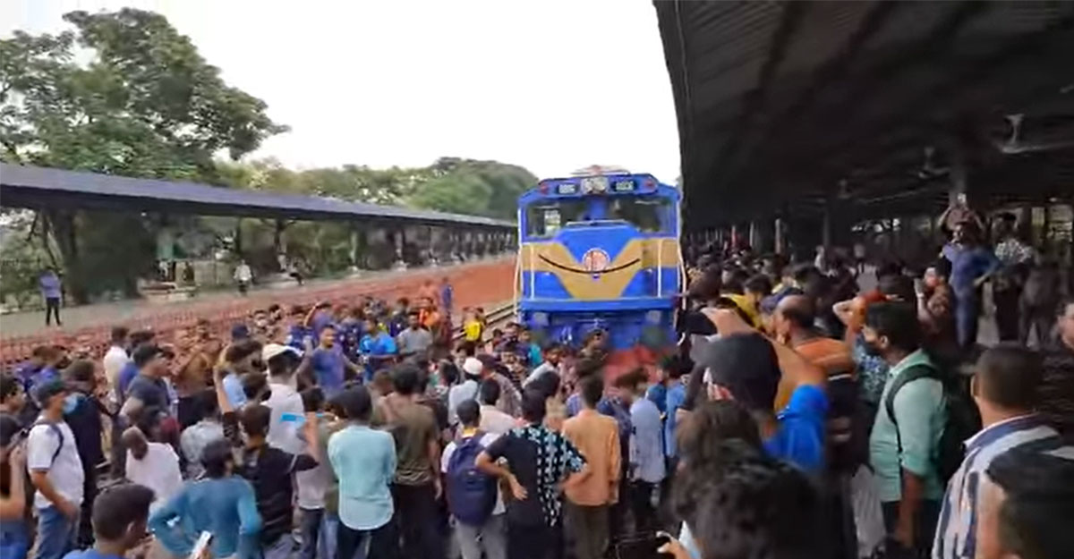 মাসুদ সারওয়ার বলেন, পরিস্থিতি নিয়ন্ত্রণে বিমানবন্দর স্টেশনে পুলিশ গেছে। যেহেতু ঢাকা থেকে বের হওয়ার রোডে ট্রেন দাঁড়ানো আছে। তাই কমলাপুর থেকে আমরা আর কোনো ট্রেন চালাতে পারছি না। প্রায় দেড় ঘণ্টার বেশি সময় যাবৎ ঢাকা থেকে ট্রেন চলাচল বন্ধ আছে।