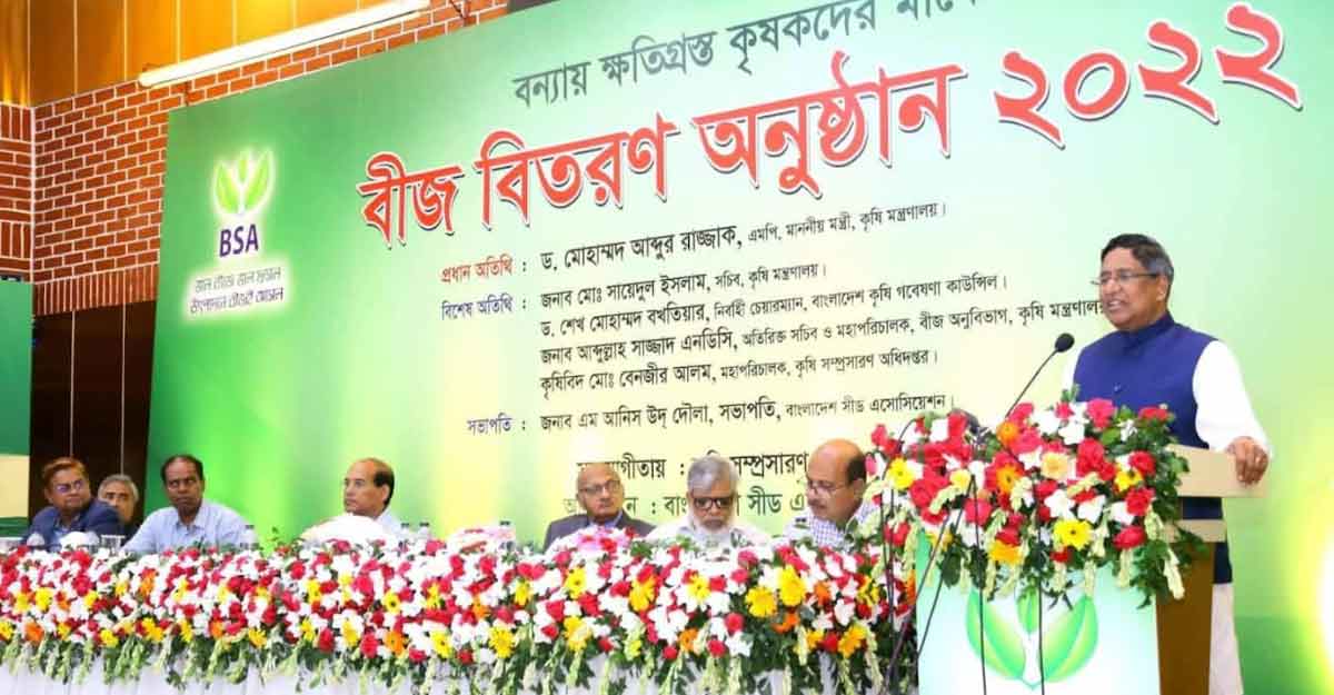 রোববার (২৪ জুলাই) বিকেলে রাজধানীর খামার বাড়িতে বিএআরসি মিলনায়তনে বন্যায় ক্ষতিগ্রস্ত কৃষকদের মধ্যে বিনামূল্যে বীজ বিতরণ অনুষ্ঠানে মন্ত্রী এ কথা বলেন। বাংলাদেশ সিড অ্যাসোসিয়েশন (বিএসএ) এ অনুষ্ঠানের আয়োজন করে।