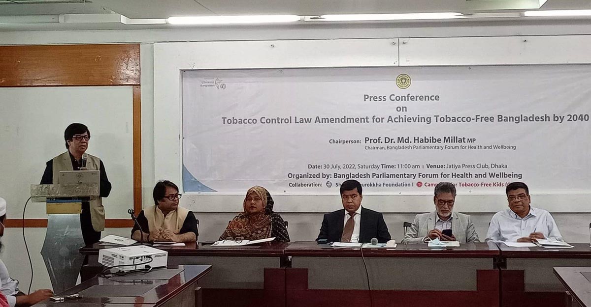 শনিবার (৩০ জুলাই) বেলা ১১টায় জাতীয় প্রেস ক্লাবের তফাজ্জল হোসেন মানিক মিয়া মিলনায়তনে স্বাস্থ্য সুরক্ষা ফাউন্ডেশন এবং ক্যাম্পেইন ফর টোব্যাকো ফ্রি কিডসের উদ্যোগে আয়োজিত এক সংবাদ সম্মেলনে এসব কথা বলেন তিনি।