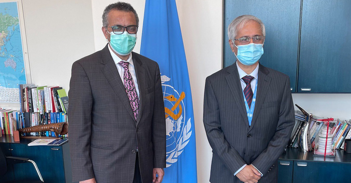বিশ্ব স্বাস্থ্য সংস্থার মহাপরিচালক টেড্রোস আধানম গেব্রিয়াসুস ও জেনেভায় বাংলাদেশের স্থায়ী প্রতিনিধি ও রাষ্ট্রদূত মো. মোস্তাফিজুর রহমান