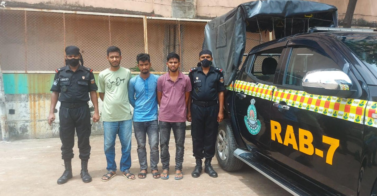আটক ৩ জন হলেন, মো. সোহেল (২৭), মো. জয়নাল আবেদীন রাশেদ (৩০) ও শাফায়েত হোসেন (২২)।